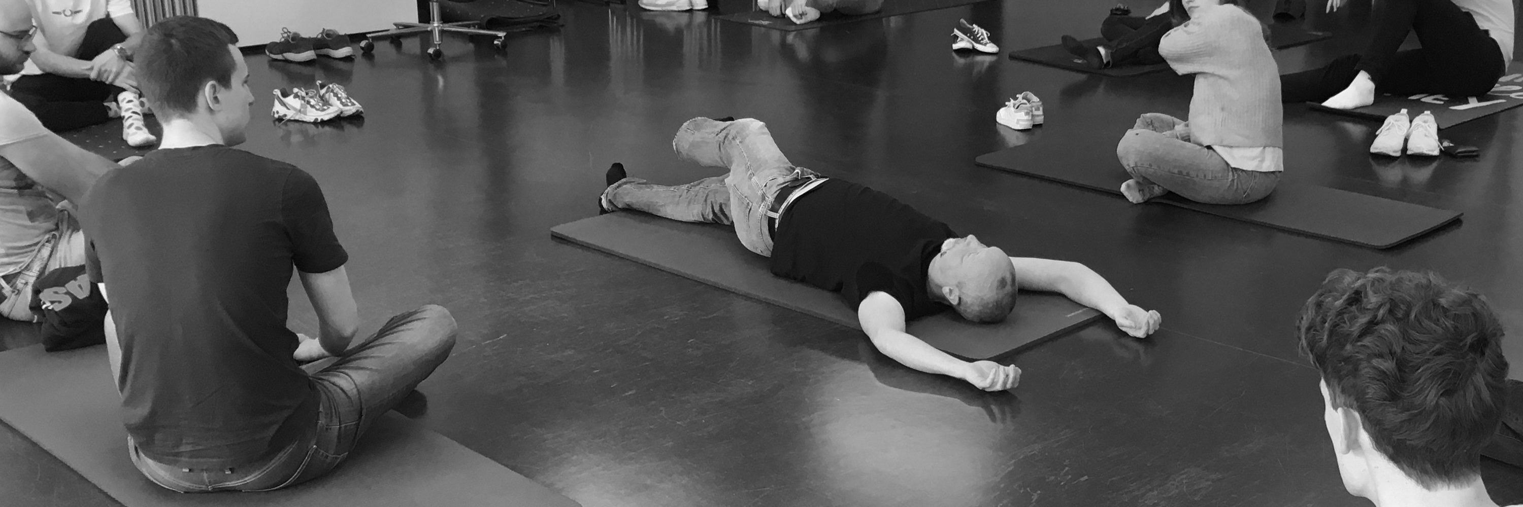 Ich greife auf verschiedene Formen der Körperarbeit, Improvisation und Kampfkunst zurück. Ergänzend führe ich theoretische Begriffe und Modelle ein und erläutere strukturelle und funktionelle körperliche Zusammenhänge.